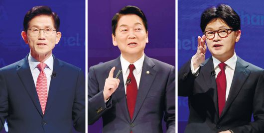 이날 후보들은 각자의 ‘아킬레스건’으로 꼽히는 논란들에 정면 돌파하려는 모습도 보였다. 김 후보는 ‘자유통일당과 전광훈 사랑제일교회 목사와의 관계’에 대한 질문에 “사실상 관련이 없다”면서 “전 목사는 자유민주주의 대한민국을 지키려고 하는 목사”라고 주장했다. 한 후보는 당원 게시판에 한 후보 가족 명의로 윤 전 대통령과 김건희씨를 비판하는 글이 올라왔다는 ‘당게 의혹’에 대해 “계엄에는 관대하고 당 게시판은 아직도 그렇 예민하나”며 “아직도 이런 얘기들이 (나오는 게) 윤석열 대통령과 김건희 여사를 성역으로 보고 있는 것에서 출발한다”고 말했다. 안 후보는 ‘언행이 민주당과 차이가 없다’는 유권자의 지적에 “민주당은 나눠주기식이고, 저는 개인 자산을 두 배로 불리는 성장 정책”이라고 했다.