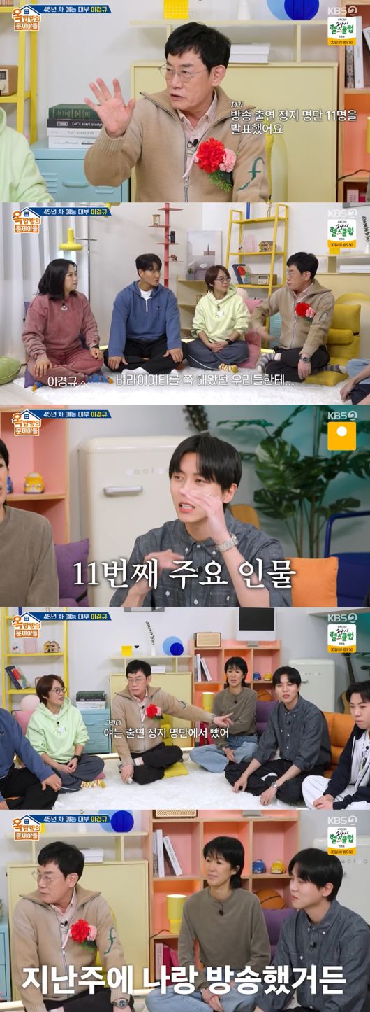 이경규는 지난 2월 KBS 2TV 예능 프로그램 ‘사장님 귀는 당나귀 귀’에서 나영석, 김태호, 안정환, 백종원, 주우재, 이현이, 이서진, 정유미, 김성주, 장성규, 김대호 총 11명을 '블랙리스트'로 지목해 화제를 모은 바 있다.