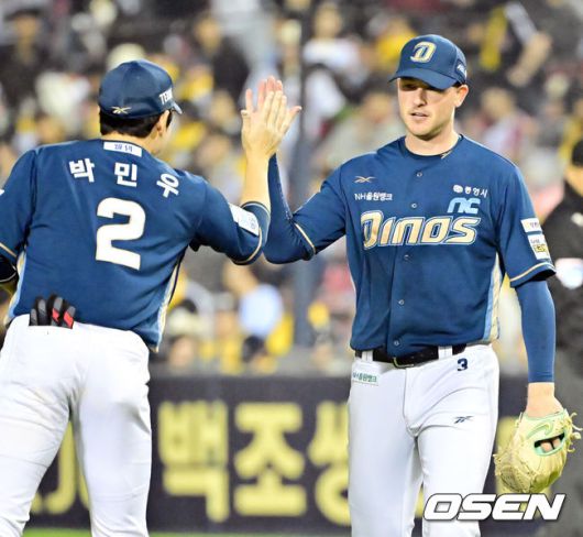 NC는 4회 선취점을 뽑았다. 선두타자 박민우가 우중간 안타로 출루했다. 1사 후 권희동의 땅볼 타구를 유격수 포구 실책으로 1,2루가 됐다.