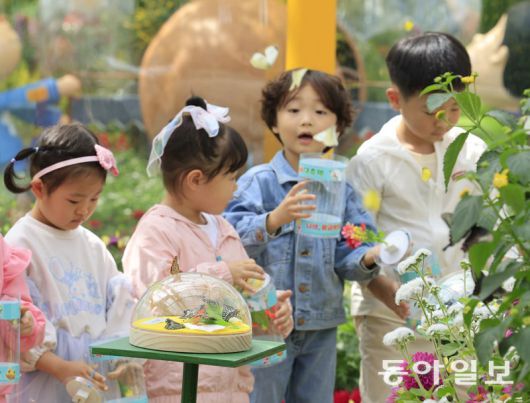 제27회 함평나비대축제 개막을 하루 앞둔 24일 전남 함평 엑스포공원에서 어린이들이 ‘나비 날리기’를 하고 있다. 이번 나비축제는 ‘나비, 황금박쥐를 만나다’라는 주제로 25일 개막해 5월 6일까지 열릴 예정이다. 함평=박영철 기자 skyblue@donga.com ⓒ 동아일보 & donga.com, 무단 전재 및 재배포 금지