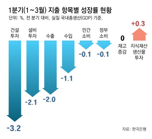 한국 경제가 올 1분기 역성장을 거두면서 연간 성장률도 당초 예상 대비 크게 낮아질 가능성이 커졌다.