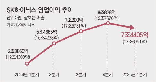 계절적 비수기에도 불구하고 올 1분기(1∼3월) SK하이닉스가 영업이익 7조4000억 원의 ‘깜짝 실적’을 냈다. 매출 및 영업이익 기준 직전 분기에 이어 역대 두 번째, 1분기 기준으로는 최고 실적이다. 미국발 관세 리스크에도 불구하고 올해 메모리 고객사 수요도 줄지 않을 것으로 회사는 전망했다.
