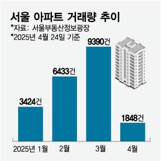 24일 서울부동산정보광장에 따르면 이날 기준 4월 서울 아파트 거래량은 1848건으로 집계됐다. 거래 신고 기간이 한 달 정도 남은 점을 고려해도 최종 거래량은 4000건 안팎일 가능성이 크다.