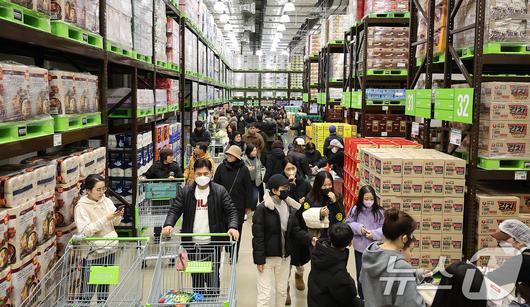 서울 강서구 트레이더스 홀 세일 클럽(이하 트레이더스) 마곡점을 찾은 고객들이 물건을 고르고 있다. 2025.2.14/뉴스1 ⓒ News1 김진환 기자 |