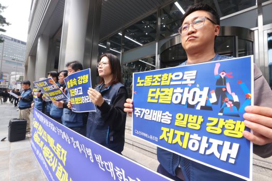 택배업체들의 이런 의지와는 반대로 현장 택배기사들을 중심으로 주 7일 배송의 무차별 도입을 반대하는 목소리도 크다. 전국택배노동조합은 이날 보도자료를 통해 “쿠팡을 시작으로 네이버 등에서도 최근 당일배송과 휴일배송을 강화하고 있다”며 “문제는 인력과 근무제도 등 인프라가 제대로 구축되지 않은 상태에서 택배사가 주 7일 배송을 시작한다는 점”이라고 지적했다. 그러면서 “주 7일 배송의 일방적 강행을 중단하라”고 촉구했다.