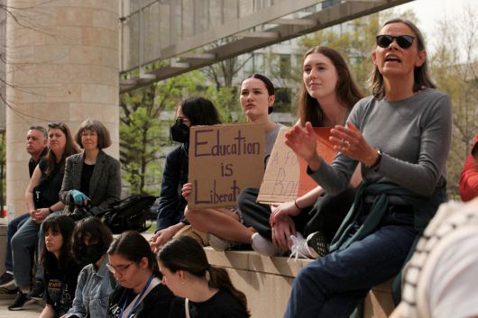 워싱턴DC 대학의 학생들과 공립학교 지지자들이 지난 4일(현지시간) 도널드 트럼프 미국 정부의 교육부 해체 및 자금 삭감 정책에 항의하고 있다. 로이터연합뉴스 |