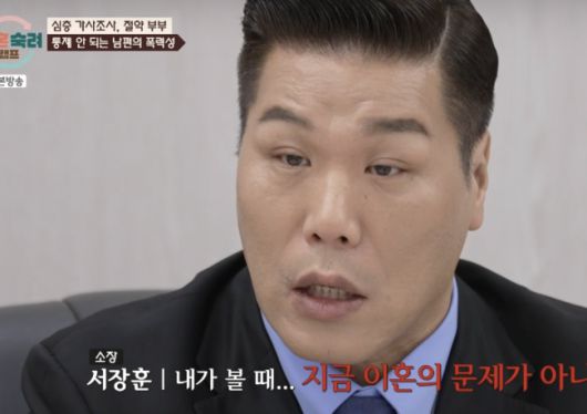[OSEN=김수형 기자] ‘이혼숙려캠프’에서 사상최초로 상담의가 이혼과 신고를 권유하는 모습이 그려졌다. 아내와 아이의 안전이 심각하게 위협을 받는다는 것. 서장훈도 이례적으로 남편의 병원치료와 분리조치가 시급함을 전했다.