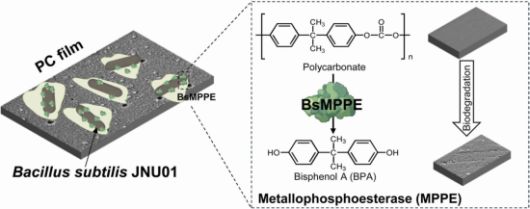 연구팀은 전사체 분석을 통해 이 미생물에서 발현되는 신규 효소 MPPE를 발굴하고, 해당 효소가 폴리카보네이트의 탄산에스터 결합을 효율적으로 절단해 단량체인 비스페놀 A를 생성함을 규명했다. 또한, 다양한 물리·화학적 분석을 통해 PC의 구조 변화와 기계적 특성 저하를 확인함으로써, 효소에 의한 분해 메커니즘을 정량적으로 입증했다.