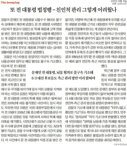 중앙 = 또 전 대통령 법정행 … 친인척 관리 그렇게 어려웠나