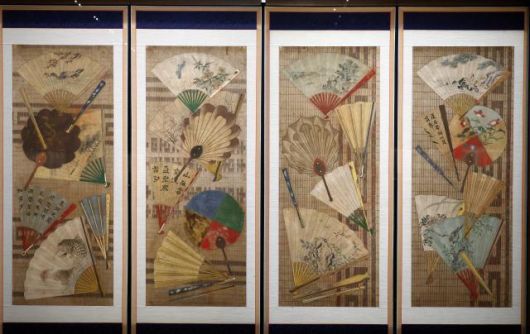 부채를 그린 백선도 병풍. |