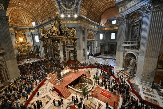 프란치스코 교황의 시신이 운구된 바티칸 성 베드로 대성당에서 일반인 조문이 시작된 지 이틀 만에 9만 명이 넘는 조문객이 다녀갔다고 교황청이 24일(현지시간) 밝혔다.
