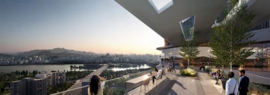 이 스카이라인 브릿지는 지상 74.5m 높이에서 단지를 하나로 연결하는 거대한 수평적 커뮤니티 공간으로, 지상 115m 높이에서 360도 조망이 가능한 '하이라인 커뮤니티'와 함께 차별화된 한강 조망과 서울의 새로운 랜드마크를 구축하겠다는 철학이 담겨 있다.