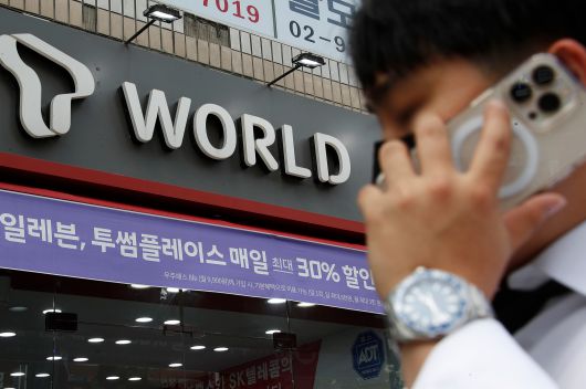 노원구에 있는 휴대폰 대리점 앞을 한 시민이 지나고 있다./뉴스1 |