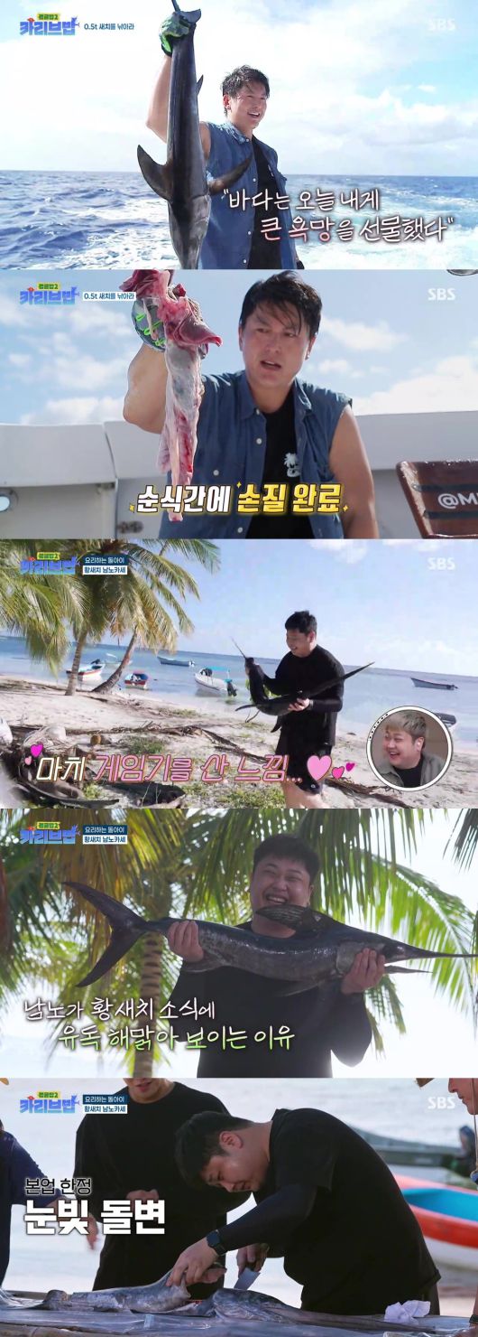 황새치를 잡기 위해 오래 기다린 만큼, 윤남노의 활약도 빛났다. 평소 카리브에서 새치류 영접을 꿈꿨던 윤남노는 류수영이 잡아 온 황새치를 눈을 못 떼는 모습을 보였다.