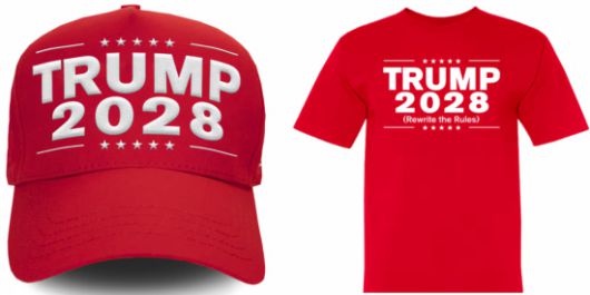 도널드 트럼프 미국 대통령이 3선 도전 가능성을 열어둔 발언을 이어가는 가운데, 트럼프 대통령 일가가 운영하는 공식 온라인 스토어에서 '트럼프 2028'이 적힌 모자와 티셔츠를 판매하기 시작해 논란이 일고 있다.