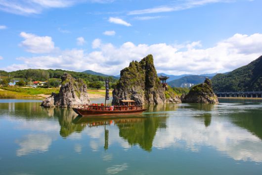석회암이 많은 단양군은 카르스트 지형이 발달했다. 석회암은 수억 년에 걸쳐 물에 녹는 용식이나 풍화 작용 등을 거쳐 동굴이나 계곡, 기암절벽 같은 독특한 지형을 만든다. 석회암 등으로 이뤄진 도담삼봉은 하천의 침식과 차별 용식 작용으로 생긴 ‘카렌(Karren)’ 지형이다.