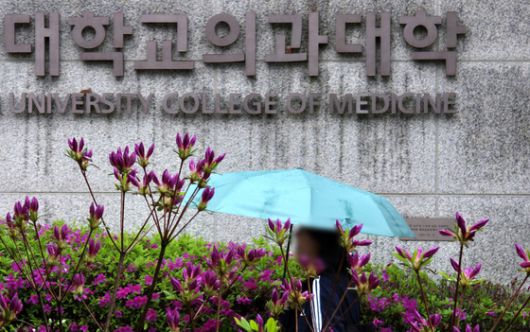 지난 22일 대전의 한 의과대학 캠퍼스에서 학생들이 우산을 쓰고 이동하고 있다. 프리랜서 김성태 |