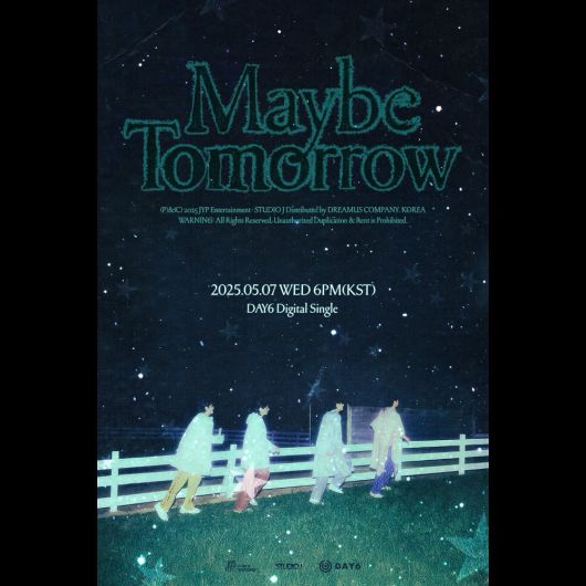 [스타데일리뉴스=서태양기자] 대세 밴드 데이식스(DAY6)가 오는 5월 7일 새 디지털 싱글 '메이비 투모로우(Maybe Tomorrow)'를 발매하며 8개월 만에 컴백한다.