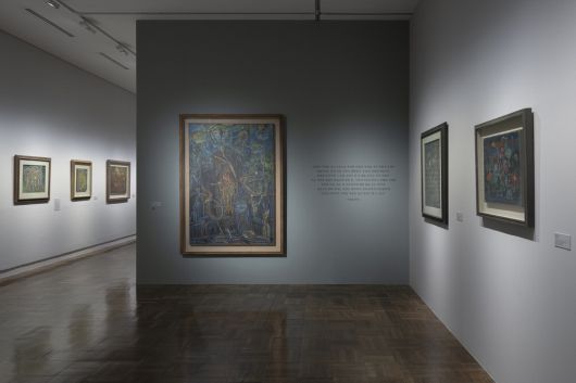 1·4후퇴 때 아내와 아이들을 두고 월남한 김욱규의 작업에는 이산의 트라우마가 드러나면서도 인간과 비인간, 삶과 죽음, 폭력과 사랑, 꿈과 현실이 공존하는 신화적 세계가 담겨 있다. 삶은 고달팠지만 그의 그림은 울창한 숲속 한가운데 와 있는 것처럼 하나같이 몽환적이고 동화적이다. 반면 작품 속에서 인간은 이목구비가 없고 앙상한 모습에 격렬한 몸짓과 손짓으로 자유를 향한 갈망을 표출한다.