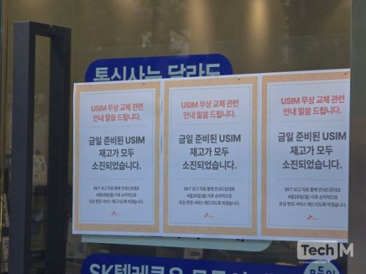 벌써 이미 보유한 유심이 소진된 매장도 있다. 유심 재고가 없는 매장은 별도 안내문을 부착했다. 순차적으로 교체를 지원하겠다며 예약을 받는 매장도 있었다. SK텔레콤은 디지털 소외계층과 격오지 고객 대상으로는 별도 안내 전화 등을 할 계획이다.