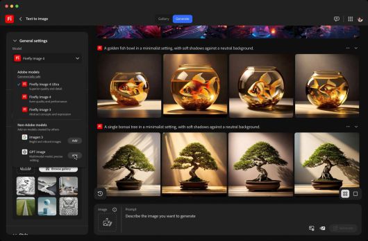 파이어플라이는 기존에 어도비 앱에 통합되어 제공되던 AI 기능을 웹 기반 단일 앱으로 통합한 것으로, 크리에이터가 하나의 공간에서 콘텐츠를 구상하고 생성·편집·제작할 수 있도록 구성됐다. 이번 앱 버전 출시를 통해 어도비는 자체 AI 모델뿐 아니라 오픈AI(OpenAI), 구글 클라우드(Google Cloud) 등 외부 파트너의 생성형 AI 모델도 선택해 사용할 수 있도록 했다.