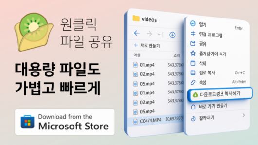 파일전송 전문 서비스 파일키위(대표 조요섭)는 PC에서 마우스 우클릭 한 번으로 간편하게 대용량 파일을 무료로 공유할 수 있는 새로운 PC 애플리케이션 '원클릭파일공유'를 정식 출시했다고 밝혔다.