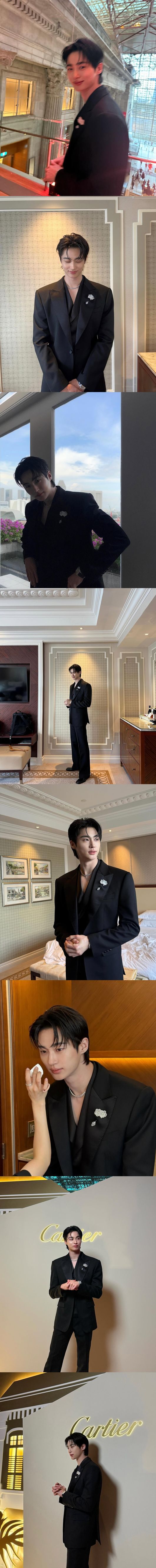 공개된 사진은 블랙 수트를 입고 다양한 포즈를 취하고 있는 모습. 애버서더로 활동 중인 명품 브랜드 행사장에 참여한 것으로 보이는 변우석은 작은 얼굴과 큰 키, 그리고 독보적인 비율을 자랑하고 있다.