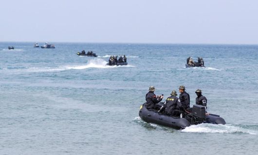 해상 침투훈련 중인 해병대 특수수색대대. 해병대 제공 |