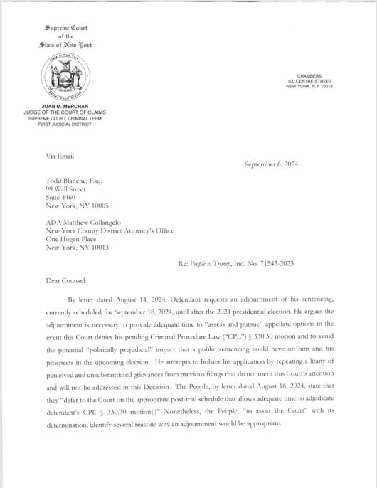 1. 미국 법원이 트럼프 선고를 대선 이후로 미룬 이유