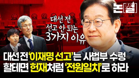 그럼에도 불구하고 대법원이 어떤 이유에선지 선고를 강행할 요량이라면, 최소한의 한가지 조건이 있습니다. 전원합의체에서 다수결이 아닌 전원일치로 판결이 나와야 합니다. ‘일부 대법관’의 뜻으로 판결이 내려진다면 가뜩이나 민주적 정당성이 결여된 상태에서 법리적 정당성마저 허약해지기 때문입니다. 최고 법관들 사이에도 의견이 갈리는데 과연 누가 그런 판결에 승복할 수 있겠습니까. 사법부의 권위와 신뢰는 무덤 속에 들어갈 것입니다. 헌법재판소가 대통령 윤석열 파면 결정에서 전원일치 합의를 이끌어낸 것과 같은 지혜가 필요합니다.