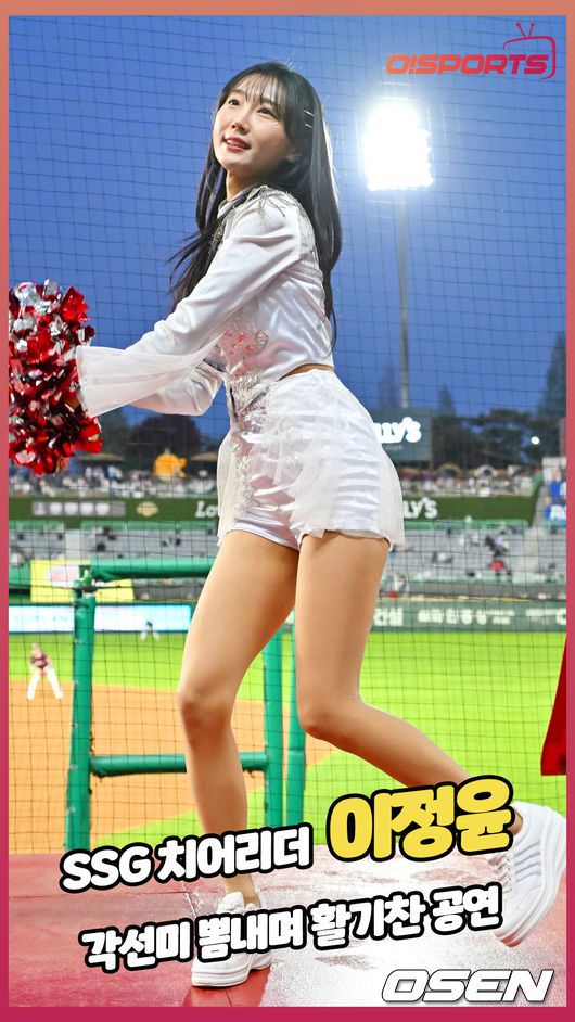 [OSEN=인천, 민경훈 기자] 25일 오후 인천 SSG랜더스필드에서 ‘2025 신한 SOL Bank KBO리그’ SSG 랜더스와 키움 히어로즈의 경기가 열렸다. 이날 홈팀 SSG는 박종훈, 원정팀 키움은 김선기를 선발로 내세웠다. SSG 이정윤 치어리더가 화려한 공연을 펼치고 있다. 2025.04.25 / rumi@osen.co.kr
