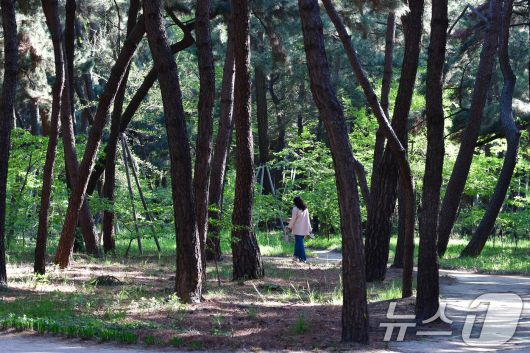 24일 오전 경북 포항시 송도동 송림테마거리에서 한 시민이 소나무길을 따라 산책하고 있다. 2025.4.24/뉴스1 ⓒ News1 최창호 기자 |