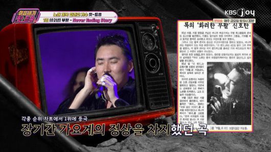 이날 9위에는 데뷔 1년 만에 정상 자리를 넘본다고 소개됐던 A.R.T의 ‘슬픈 얼굴(1997)’이 랭킹됐다. 김희철은 “데뷔 3개월 차에 IMF로 인해 가요 순위 프로그램이 폐지됐다”라며 “이후 2집으로 활동을 재개했으나 멤버 박성준이 여자 친구를 폭행했다는 기사가 났다. 결국 당시 제작사 대표였던 태진아도 어쩔 수 없이 그룹 해체 결정을 했다”라고 설명했다.
