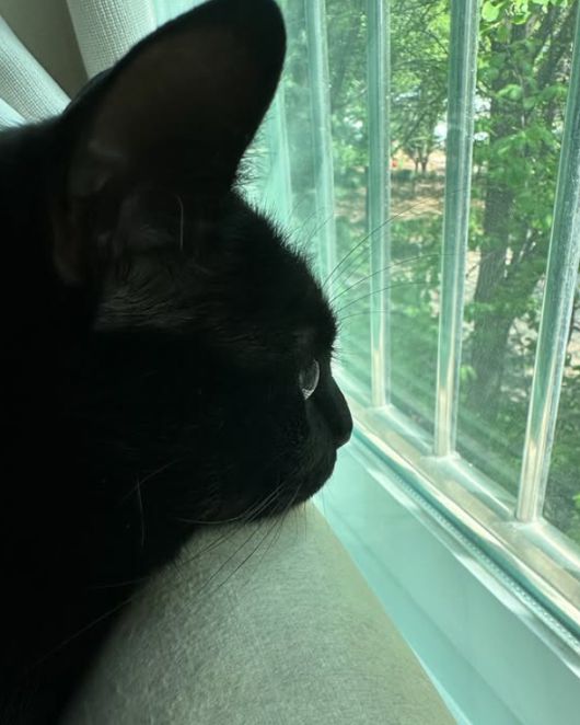 이어지는 사진 속 다홍이는 쿠션에 누워 유리창 밖을 바라보며 여유를 즐기고 있는 듯하다.