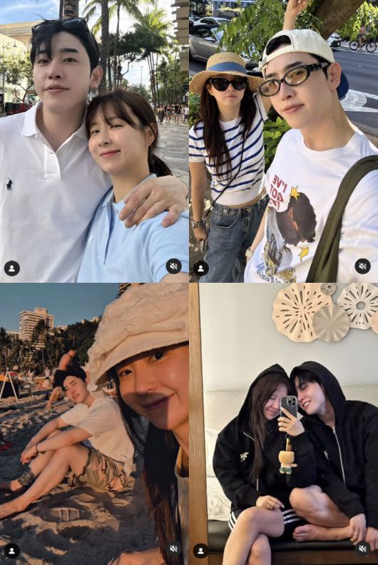 사진 속 은가은 박현호 부부는 하와이로 신혼여행을 떠난 모습. 두 사람은 하와이의 아름다운 해변을 배경으로 인증샷을 남기며 달콤한 허니문을 즐기고 있어 시선을 모은다.
