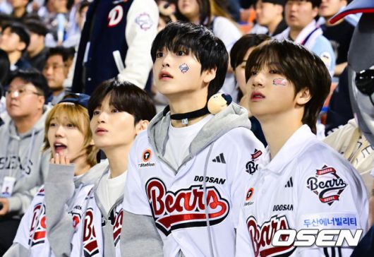 [OSEN=잠실, 김성락 기자] 롯데 자이언츠가 신동빈 회장의 깜짝 응원에 힘입어 두산을 완파하고 다시 연승 가도에 올라섰다. 프로야구 롯데 자이언츠는 25일 서울 잠실구장에서 열린 2025 신한 SOL뱅크 KBO리그 두산 베어스와의 시즌 4차전에서 8-2 완승을 거뒀다. 그룹 크래비티가 열띤 응원을 펼치고 있다. 2025.04.25/ ksl0919@osen.co.kr