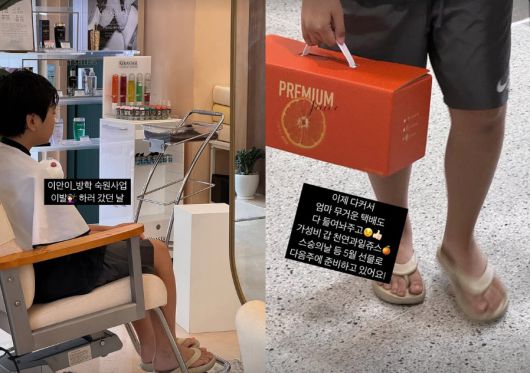 박지윤은 “이안이 방학 숙원 사업 이발 하러 갔던 날”, “머리 마음에 들어 하셨고”, “한국 이탈리아 사람”, “이제 다 커서 엄마 무거운 택배도 다 들여놔주고”라는 글과 미용실, 식당에서 함께 한 아들의 사진을 공개했다.