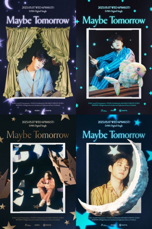 데이식스는 내달 7일 새 디지털 싱글 ‘메이비 투모로우’(Maybe Tomorrow)를 발표한다. JYP엔터테인먼트는 25일 오후 공식 사회관계망서비스(SNS) 채널에 개인 포스터 4종과 스케줄러를 순차 게재해 팬들의 이목을 집중시켰다.