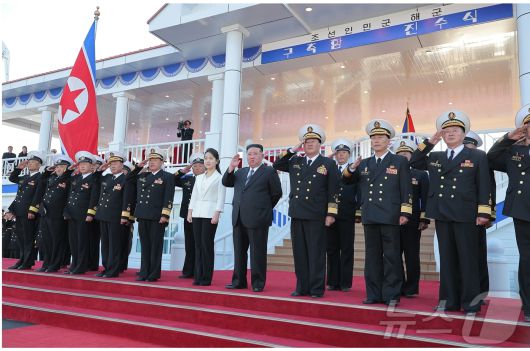 (평양 노동신문=뉴스1) = 북한 노동당 기관지 노동신문은 26일 "김정은 동지를 모시고 새로 건조한 구축함 진수 기념식이 조선혁명의 첫무장력의 창건일인 뜻깊은 지난 25일 남포조선소에서 성대히 진행됐다"라고 보도했다. 신형 구축함은 5000톤(t)급으로, 북한은 이를 '최현급'으로 등급 분류했다. [국내에서만 사용가능. 재배포 금지. DB 금지. For Use Only in the Republic of Korea. Redistribution Prohibited] rodongphoto@news1.kr
