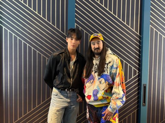 (서울=뉴스1) 황미현 기자 = 몬스타엑스(MONSTA X) 셔누가 세계적인 DJ 겸 프로듀서 스티브 아오키(Steve Aoki)와 깜짝 무대를 선사했다.