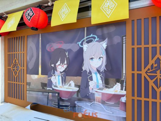 먼저 외부는 '마스터 시바의 특제 라멘' 간판을 비롯해 아르바이트 복장을 한 '세리카', 라멘을 먹는 '아야네'와 '시로코' 그리고 각종 포스터로 꾸며졌다.