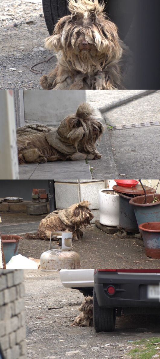 [스타데일리뉴스=황규준 기자] 털이 잔뜩 뒤엉킨 채 심각한 상태의 누더기견이 나타났다는 제보를 받고 향한 곳은 대구의 한 동네. 개의 상태가 차마 말로 설명하지 못할 정도다. 목격 장소에서 만난 누더기견의 몰골은 그야말로 충격 그 자체였다. 어디가 다리고 몸통인지 구별이 안 될 정도로 누더기 털을 뒤집어쓴 개 한 마리가 발견됐다. 등은 털이 뒤엉키다 못해 뭉쳐져 마치 두꺼운 갑옷을 입은 것 같았고, 심지어 앞머리는 눈을 가려 앞이 보이지 않을 지경이었다. 한눈에 봐도 오랜 기간 길거리를 떠돈 듯한 모습의 녀석은 어쩌다 이런 몰골이 된 걸까?