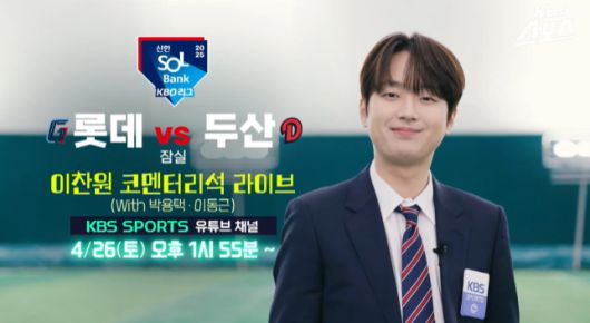 이날 이찬원이 함께한 중계석 현장은 KBS 스포츠 공식 채널 라이브를 통해 송출 됐다. 이찬원은 본격적인 경기 시작에 앞서 박용택, 이동근과 프로야구 중계에 관한 이야기를 나눴다. 그는 "중계하기에 투수전이 편하냐 타격전이 더 편하냐"고 질문했고, 박용택과 이동근은 "투수전이 훨씬 재밌다. 편하다", "할얘기가 훨씬 많다"고 답했다.