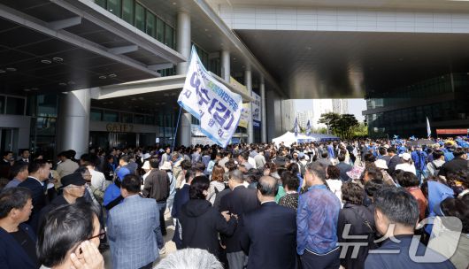 더불어민주당의 제21대 대통령선거 후보자 선출을 위한 호남권 합동연설회가 열리는 26일 광주 서구 김대중컨벤션센터에서 당원들이 지지하는 후보를 열렬히 응원하고 있다. 2025.4.26/뉴스1 ⓒ News1 김태성 기자 |