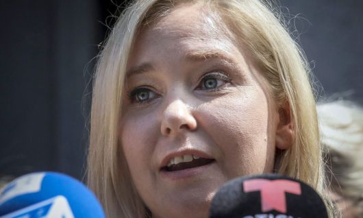2019년 미국인 억만장자 제프리 엡스타인의 미성년자 성 착취 범죄 관련 재판에 출석한 피해자 버지니아 주프레(1983∼2025)가 법정 밖에서 기자회견을 하고 있다. 주프레는 지난 24일 자살로 생을 마감했다. AP연합뉴스 |