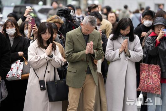 [도쿄=AP/뉴시스] ??????홍콩 등 지역에서 올여름 일본에서 큰 지진이나 쓰나미가 발생할 것이라는 소문이 확산되면서 일본 정부까지 진화에 나섰다. 사진은 동일본 대지진 참사 14주년인 11일 일본 도쿄에서 시민들이 사고 당시와 같은 시간인 오후 2시 46분을 기해 희생자들을 추모하는 묵념을 하는 모습. 2025.04.26 |
