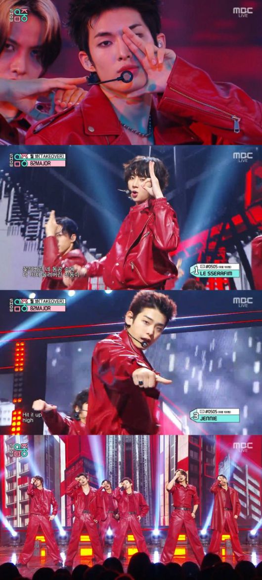 82메이저는 26일 오후 방송된 MBC '쇼! 음악중심'에 출연해 미니 3집 'SILENCE SYNDROME'(사일런스 신드롬) 타이틀곡 '뭘 봐(TAKEOVER)' 무대를 펼쳤다.