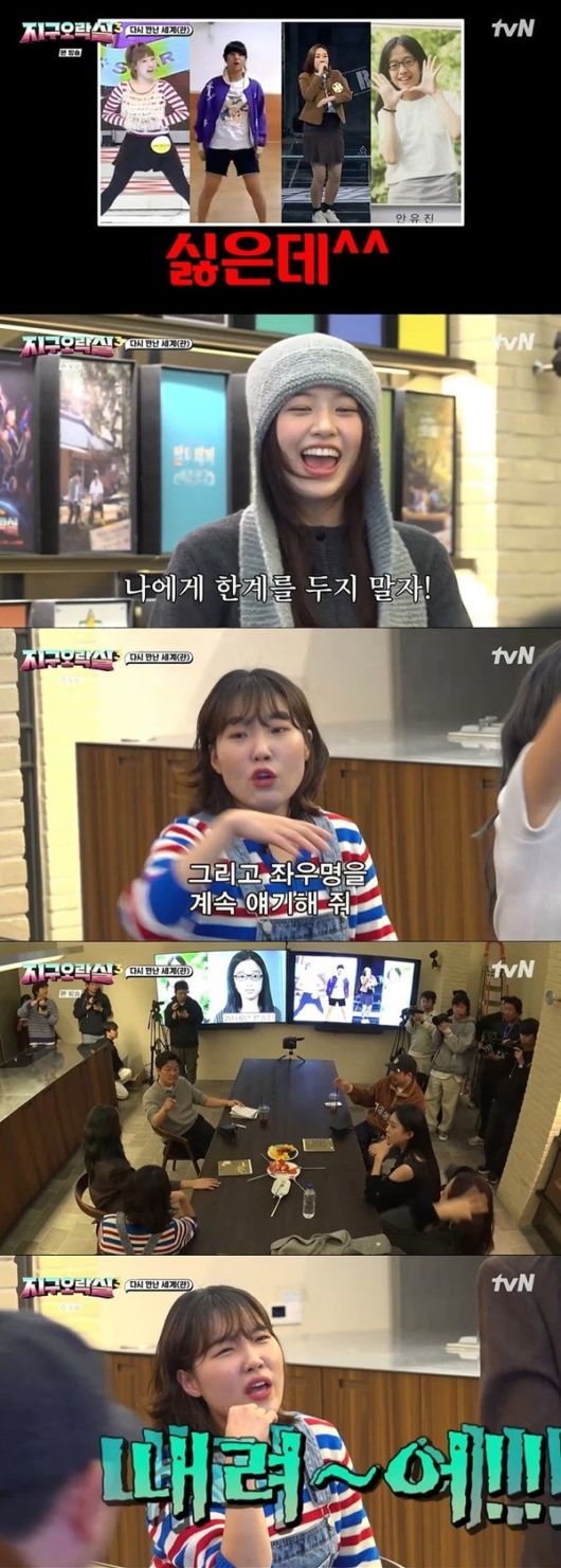 이어서 도수 높은 안경을 쓴 안유진의 모습이 화면에 등장했다. 이를 본 이영지는 "저 안경 뭐냐, 저거 쓰면 한 7.0 되겠다"고 놀렸고, 안유진은 "저 때 도수가 -9였다. 그래서 저렇게 웃기고 눈도 작은 것"이라고 설명하며 웃었다.