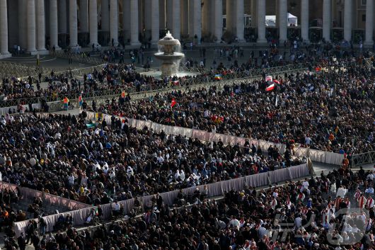 프란치스코 교황의 장례미사를 앞두고 26일(현지시간) 바티칸에 있는 성베드로 광장에 추모객들이 모여있다. 2025.04.26 ⓒ 로이터=뉴스1 ⓒ News1 최종일 선임기자