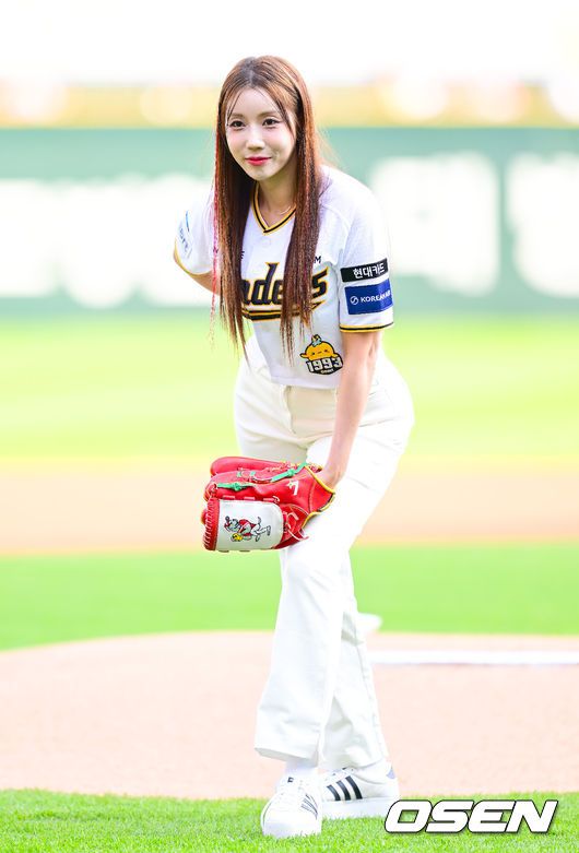 [OSEN=인천, 김성락 기자] 26일 인천 미추홀구 SSG랜더스필드에서 '2025 신한 SOL Bank KBO리그' SSG 랜더스와 키움 히어로즈의 경기가 열렸다. 홈팀 SSG는 앤더슨, 키움은 로젠버그를 선발로 내세웠다. 경기 시작에 앞서 가수 두리가 시구를 하고 있다. 2025.04.26 / ksl0919@osen.co.kr